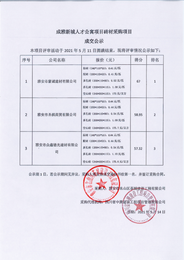 雅安市名山區綜合農貿中心新建項目邊坡擋墻工程專業分包采購成交結果公示...